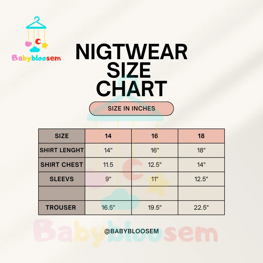 Our Boys cotton Nightwear printed are made from high-quality cotton for a comfortable night's sleep. The fun and playful prints are perfect for young boys, while the breathable fabric will keep them cool and cozy all night long. Give your child a peaceful and restful slumber with our Boys cotton Nightwear printed.