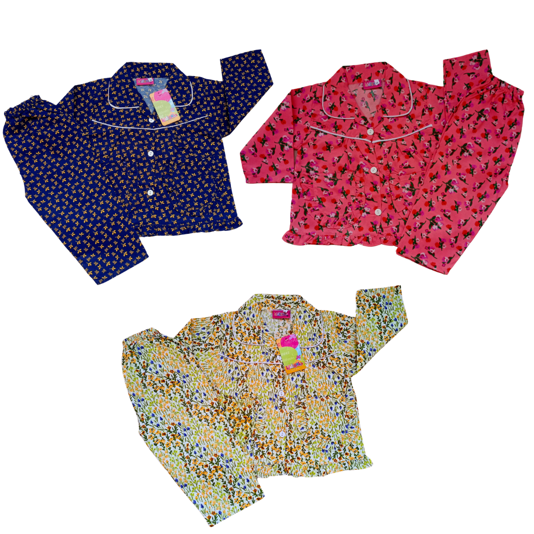 This pack of 3 Girls Cotton Nightwear offers ultimate comfort and breathability with its high-quality cotton fabric. Perfect for a good night's sleep, each set includes three stylish and versatile designs. Keep your little one cozy and stylish at bedtime with this must-have pack.