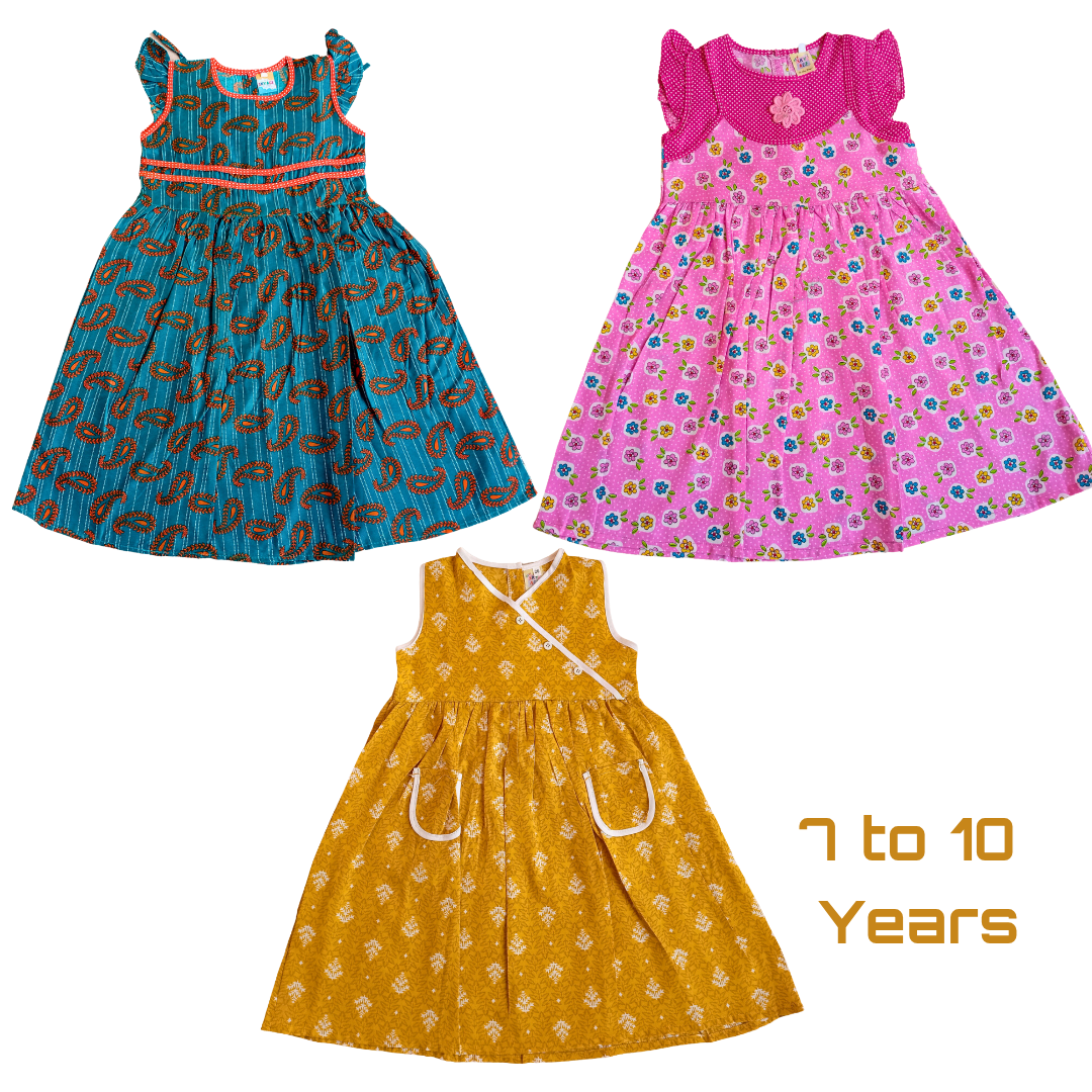 Get your little girl ready for any occasion with this pack of 3 girls' frocks. Each frock comes in a different color and print, giving her plenty of options to choose from. Made with quality materials, these frocks are a perfect combination of style and comfort.
